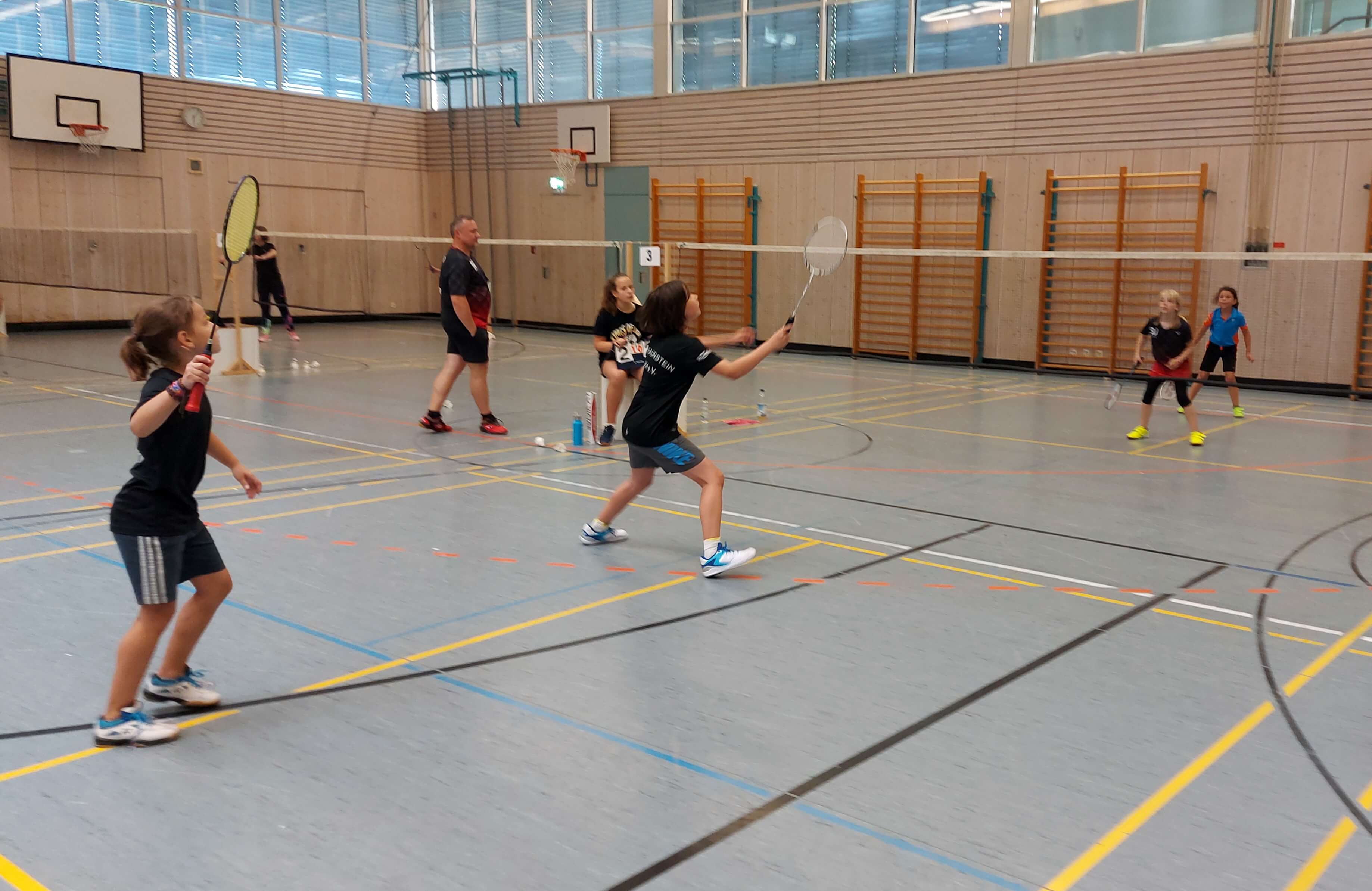 Unser Training findet in mehreren Leistungsgruppen statt. Zum Einspielen lassen wir jedoch 10-15 Minuten Paarungen mit Geübten und weniger Geübten, Schnupperern und Anfängern gegeneinander spielen. Dies fördert den Zusammenhalt der gesamten Gruppe und die Besseren üben dabei das präzise Zuspiel auf den Schwächeren. Für den Wettkampf muss dann genau das Gegenteil geübt werden, Rückschlag möglichst dorthin wo der Gegner nicht steht. Die Trainingsschwerpunkte sind an die jeweilige Leistungsstärke angepasste Schläge wie Aufschlag, Clear, Smash, Drop, sowie Spieltaktik für Einzel, Doppel und Mixed.