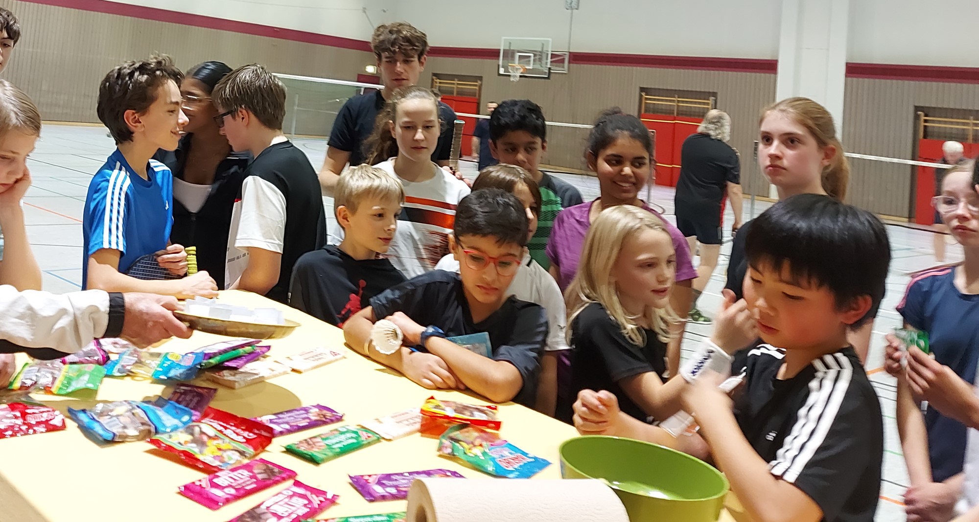 Als Abschluss des Kalenderjahres haben wir Ende Dezember in unserer Halle wieder das beliebte „Schleiferlturnier“ (Bilder als Anlage) durchgeführt, bei dem 25 Kids anwesend waren. Der Name Schleiferlturnier deshalb, weil sich die Sieger der einzelnen Paarungen ein „Schleiferl“ an den Schlägerschaft binden dürfen. An diesem Turnier spielen alle anwesenden Kids mal mit- mal gegeneinander, ältere oder jüngere, gute oder weniger gute Spieler. Dabei werden immer wieder neue Doppelpaarungen ausgelost die gegeneinander spielen. Die Dauer der jeweiligen Spiele ist im Voraus unbekannt und wird kurzgehalten, um möglichst viele verschiedene Paarungen zu erhalten. Es gibt etwas zum Knabbern und jeder darf sich ein kleines Geschenk aussuchen. Turniersieger gibt es bewusst nicht, man kann nur an der Anzahl der Schleiferl die etwas glücklicheren erkennen. Zum Abschluss wurde noch ein von Daniela, unserer früheren Trainerin, gespendeter Schläger unter allen anwesenden Kids ausgelost. Glücklicher Gewinner war der 13-jährige Atharv.