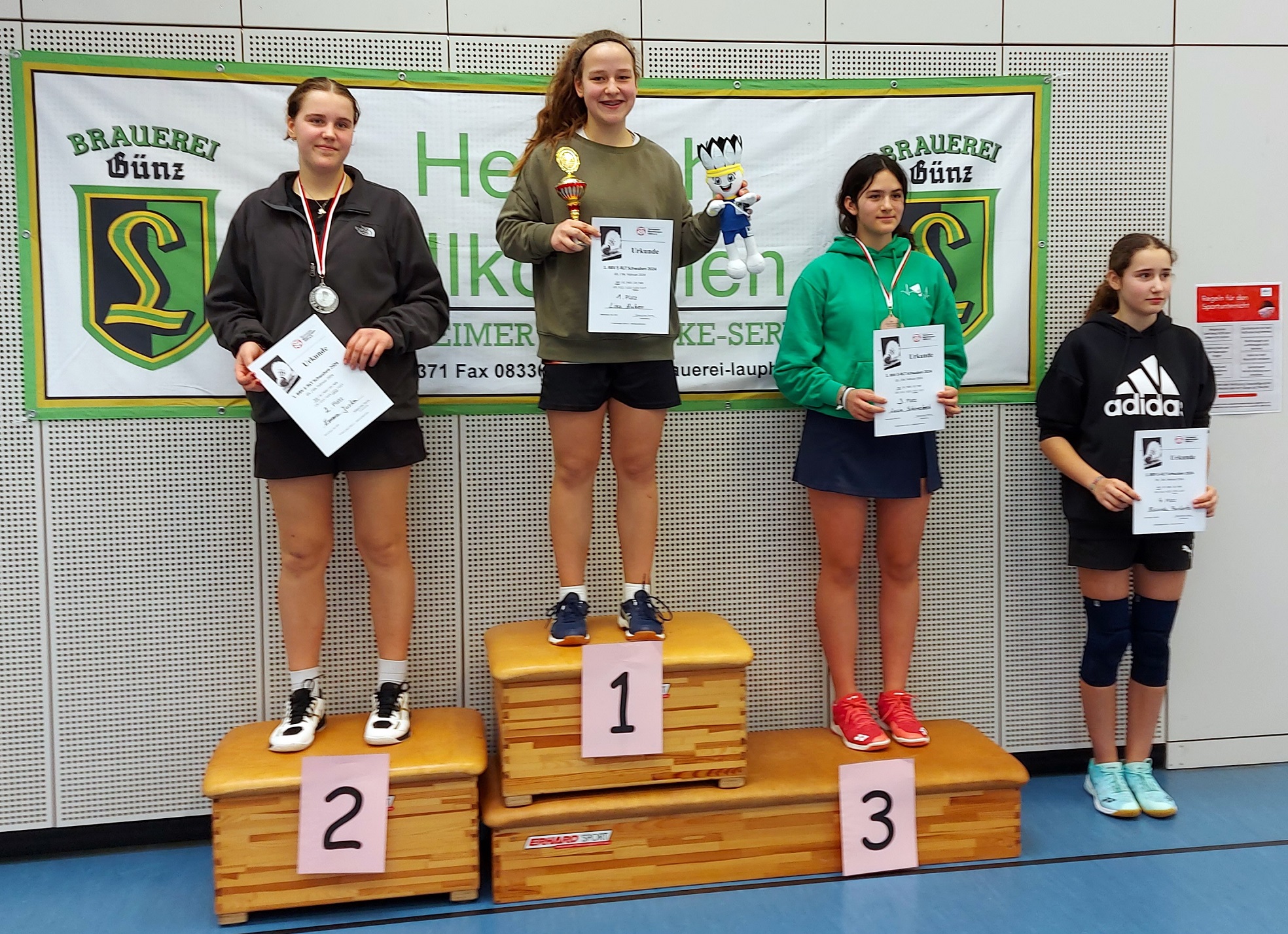 - Klara Huber U 11, durch je einen 5. Platz im Einzel und im Doppel