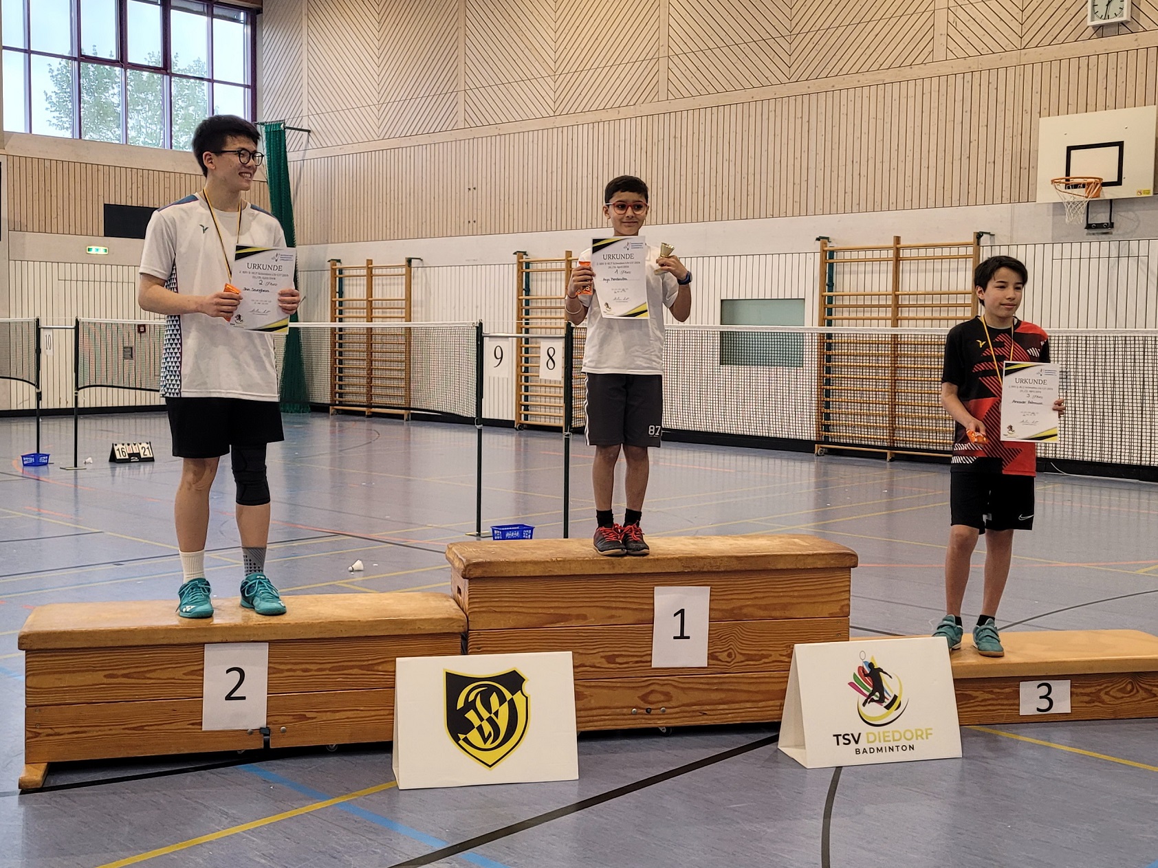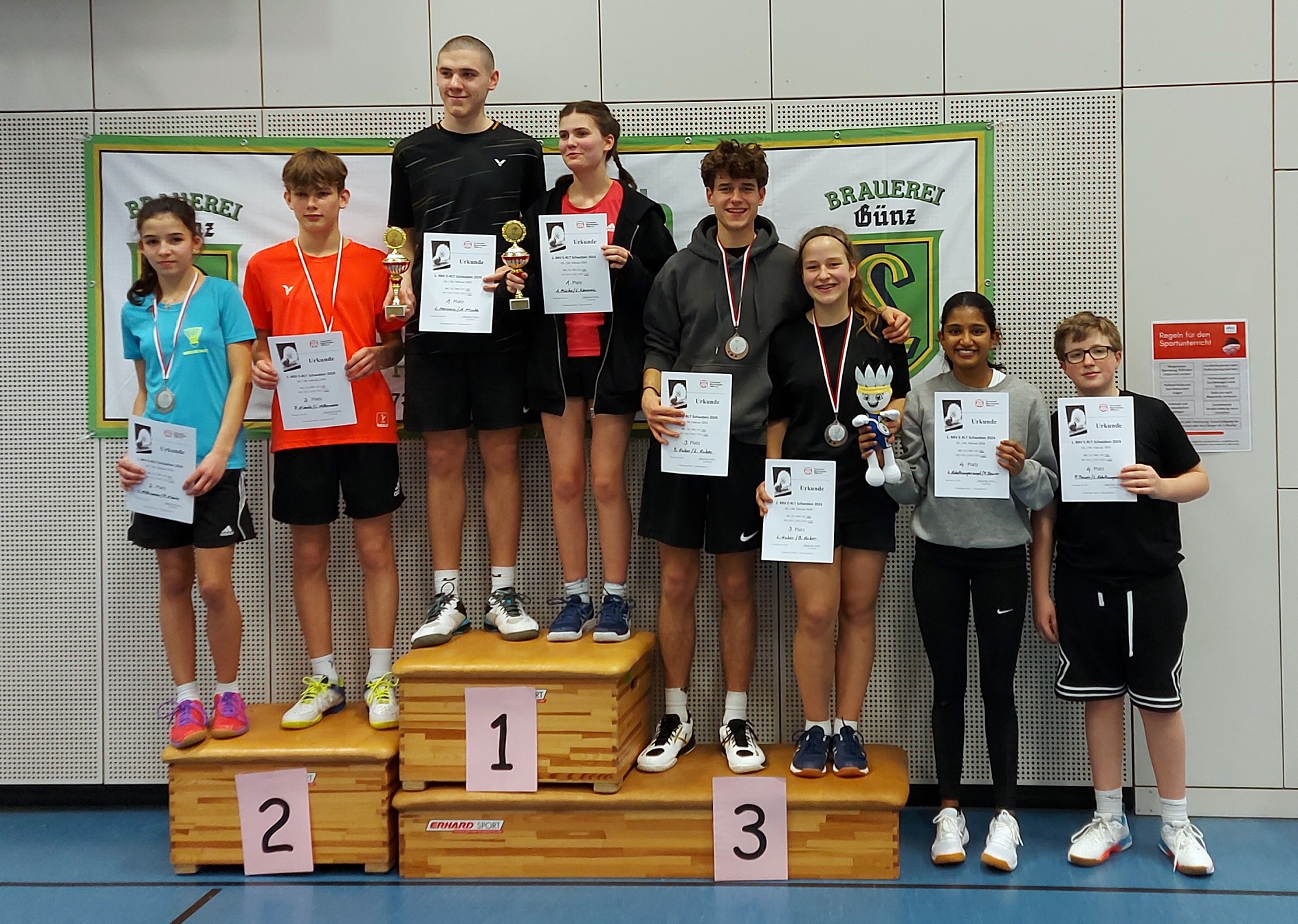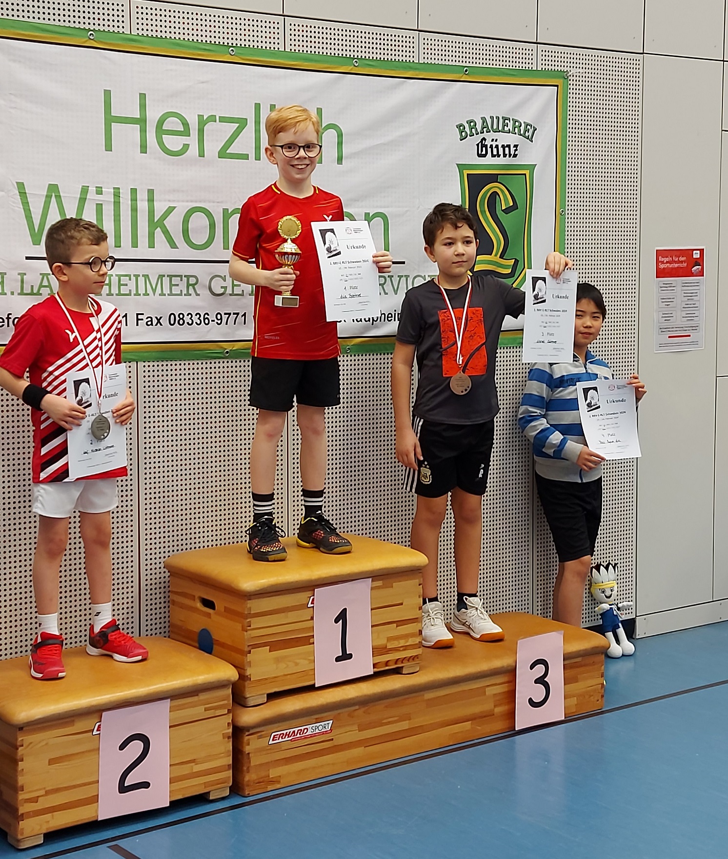 - Unser 12-jähriger Arya M. wurde in den bayerischen Landeskader aufgenommen. In diesem wird erwartet, dass alle Jugendlichen an den beiden höchsten deutschen Turnier-Klassen antreten. Arya hat mittlerweile an 6 A- und 3 B- Turnieren teilgenommen, wobei ein B-Klassensieg im Jungeneinzel sowie vordere Platzierungen im Doppel und Mixed auch in der A-Klasse hervorzuheben sind. Man muss dabei betrachten, dass die Teilnahme an diesen Turnieren Wochenendreisen in bis zu 800 km entfernte Städte in ganz Deutschland verteilt voraussetzt und trotzdem die Schule nicht zu kurz kommen darf. Eine hoch einzuschätzende Leistung für ein „Kind“ in seinem Alter. In der deutschen Rangliste hat Arya es inzwischen in die TOP 15 seiner Altersklasse geschafft.