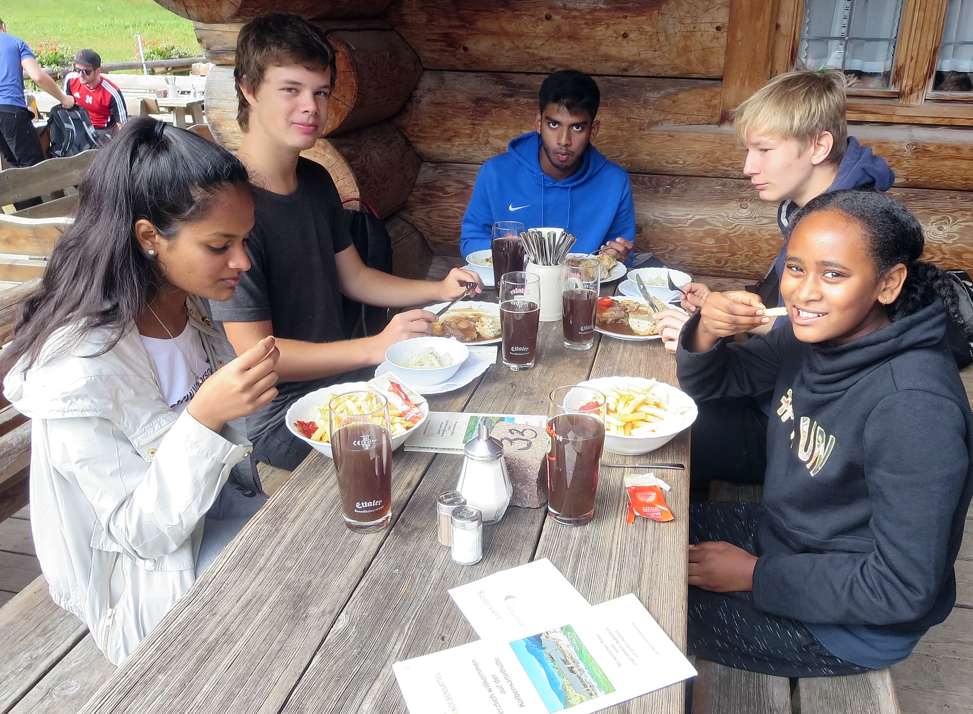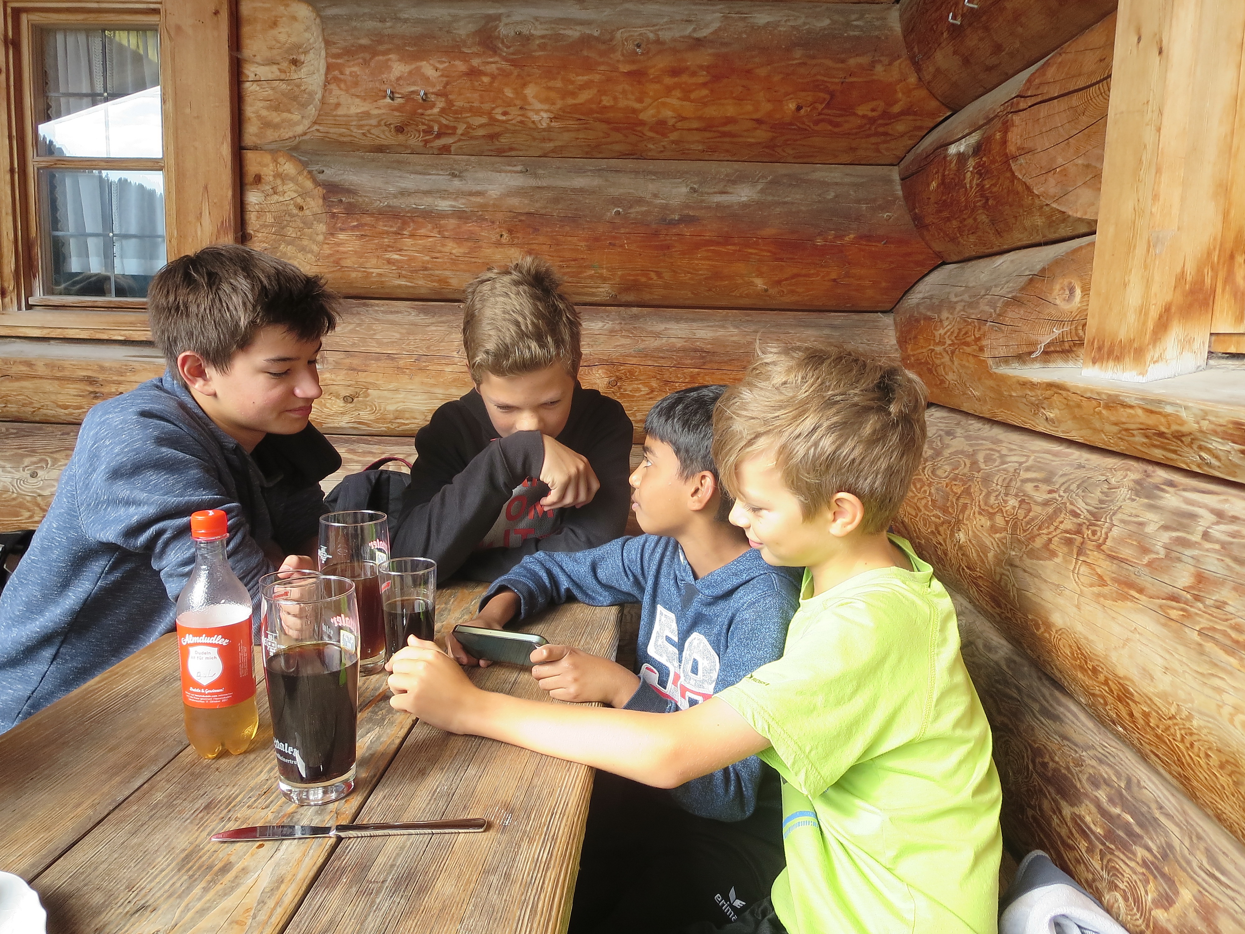 Am 23. September 2017 morgens fuhren wir zusammen nach Oberammergau. Von dort ging's zu Fuß zur 400 m höher gelegenen Kolbensattelhütte. Den mit 1 1/4 Stunden ausgeschilderten Aufstieg schafften unsere jungen Sportler natürlich weit unter 1 Stunde. In der rustikalen Kolbensattelhütte gab's dann zur Stärkung für die nächste Aktion, ein Mittagessen mit Getränken.