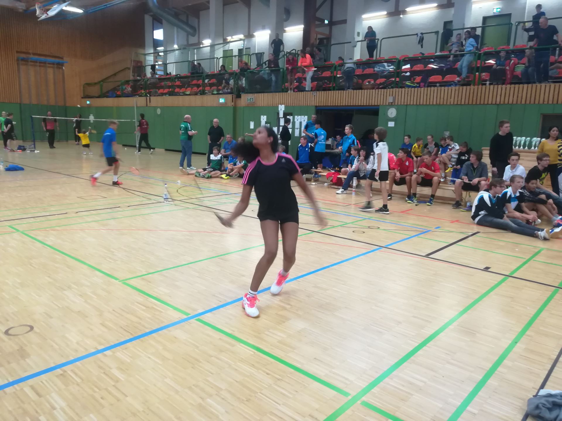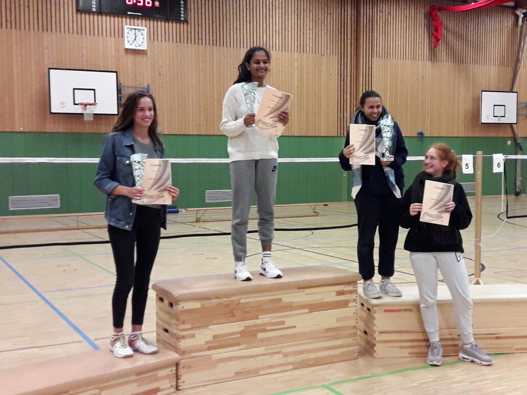 Nachdem nun zwei der Jugendlichen sich im Finale wacker geschlagen hatten, musste jetzt schon noch ein Sieg her. Hierfür war auf Karuniya in der Altersklasse U17 Verlass. Sie erreichte auch ohne Schwierigkeiten das Finale, in dem sie gegen eine gute Freundin antreten musste. Es gab einen hart umkämpften ersten Satz, den sie schließlich nach nervenaufreibender Verlängerung 25:27 für sich entscheiden konnte. Der folgende Satz begann ebenso spannend wie der erste. Jedoch nach einer kleinen Streitigkeit um die Ballgeschwindigkeit zündete sie den Turbo und war Feuer und Flamme. Sie spielte sehr präzise und konsequent die Punkte aus und nutzte ihre Chancen für einen schnellen Abschluss. Schließlich gewann sie den zweiten Satz des Finales sehr deutlich und souverän.